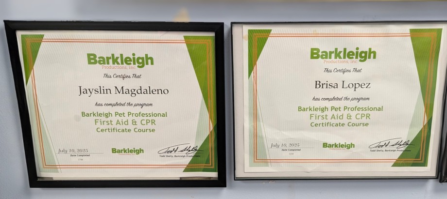 (We require pups less than 1 year old, and first time clients to provide proof of current vaccinations.)